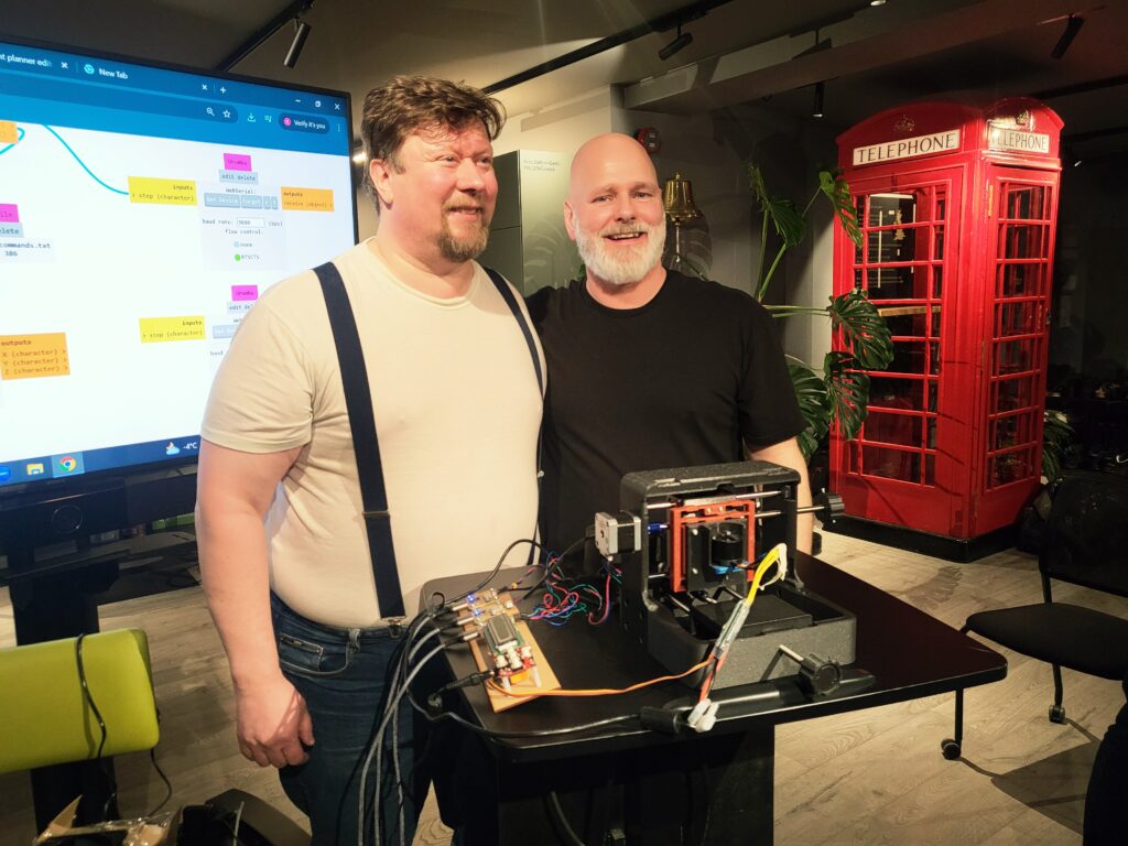 Another highlight was Jani Ylioja (Super Fab Lab Oulu) leading the build of a 3D-printed “Sampo” milling machine, produced with group support and ultimately gifted to Fab Lab Húsavík, exactly the kind of shared making that leaves something tangible behind.